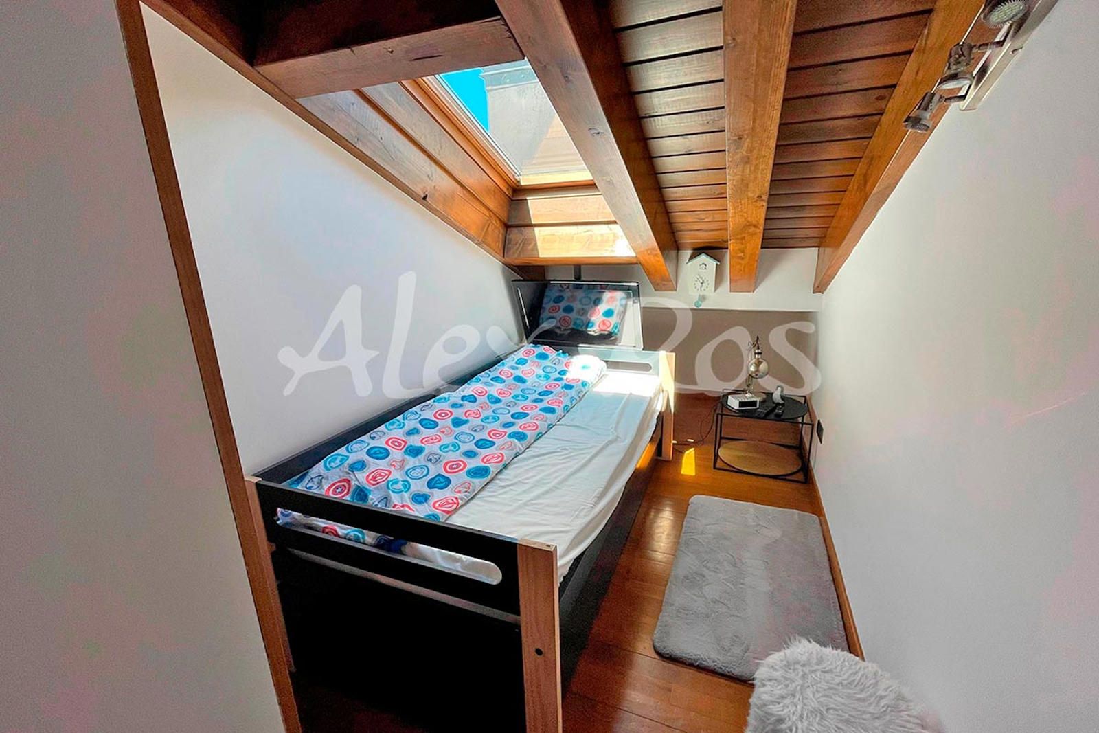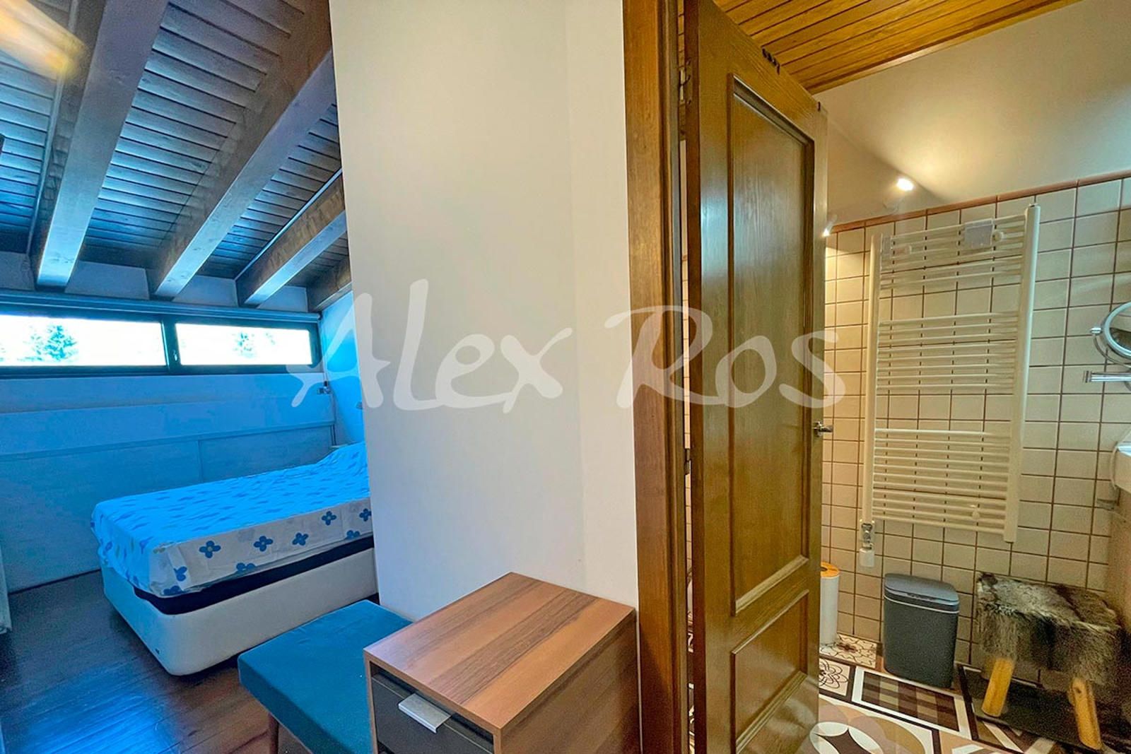 En la planta superior, una habitación individual con entrada de luz natural y una suite principal con baño reformado, bajo techos inclinados que le aportan calidez y carácter.