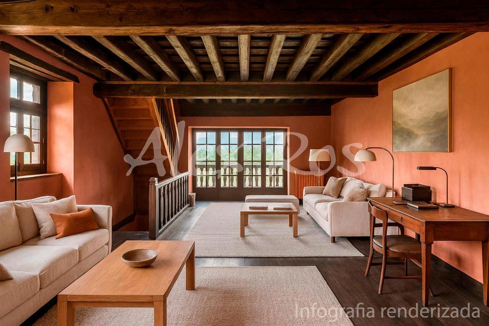 En la segunda planta, encontramos una gran biblioteca con chimenea, que puede servir también de espacio polivalente. Dos habitaciones dobles, y un baño.