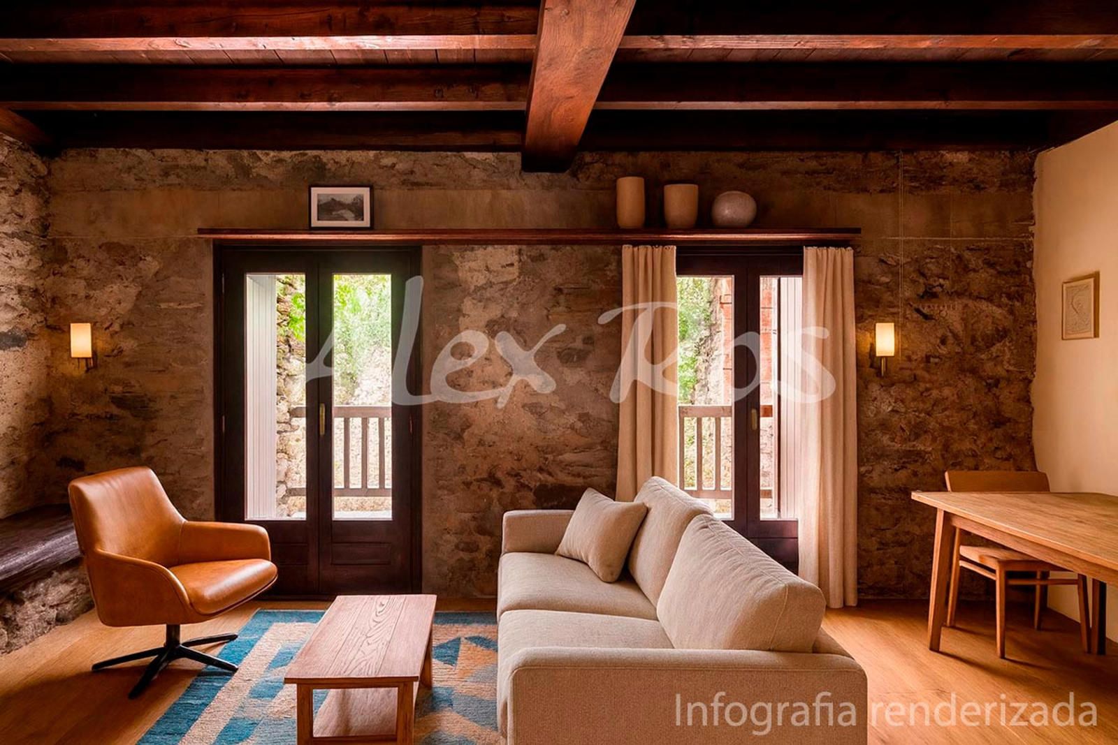 Se trata de una construcción auténtica, con anchas paredes de piedra, y vigas de madera, que han sabido rehabilitar y poner al día, de forma armónica y respetuosa, para conservar al máximo la personalidad del edificio.