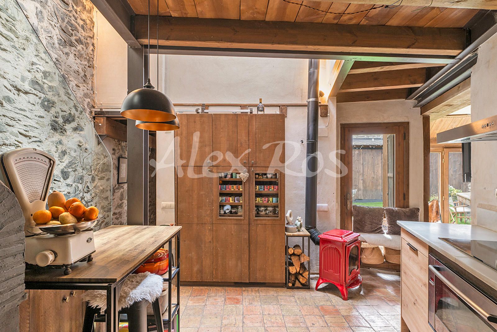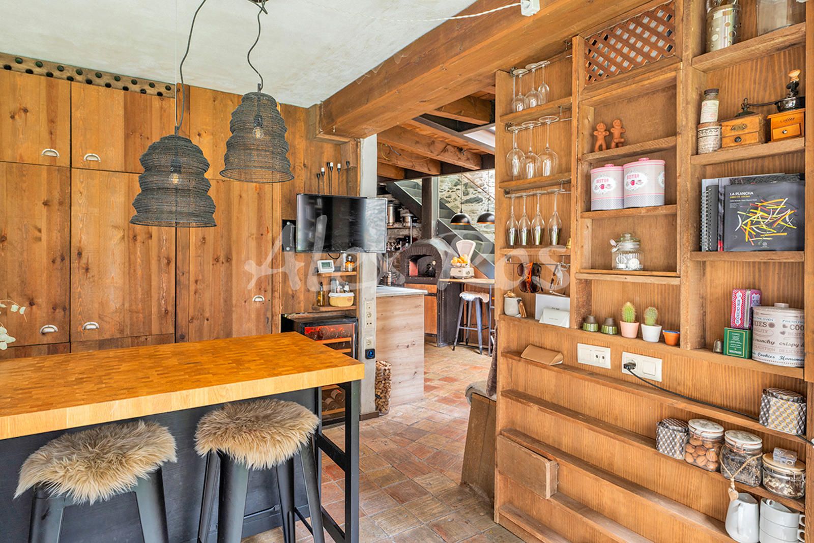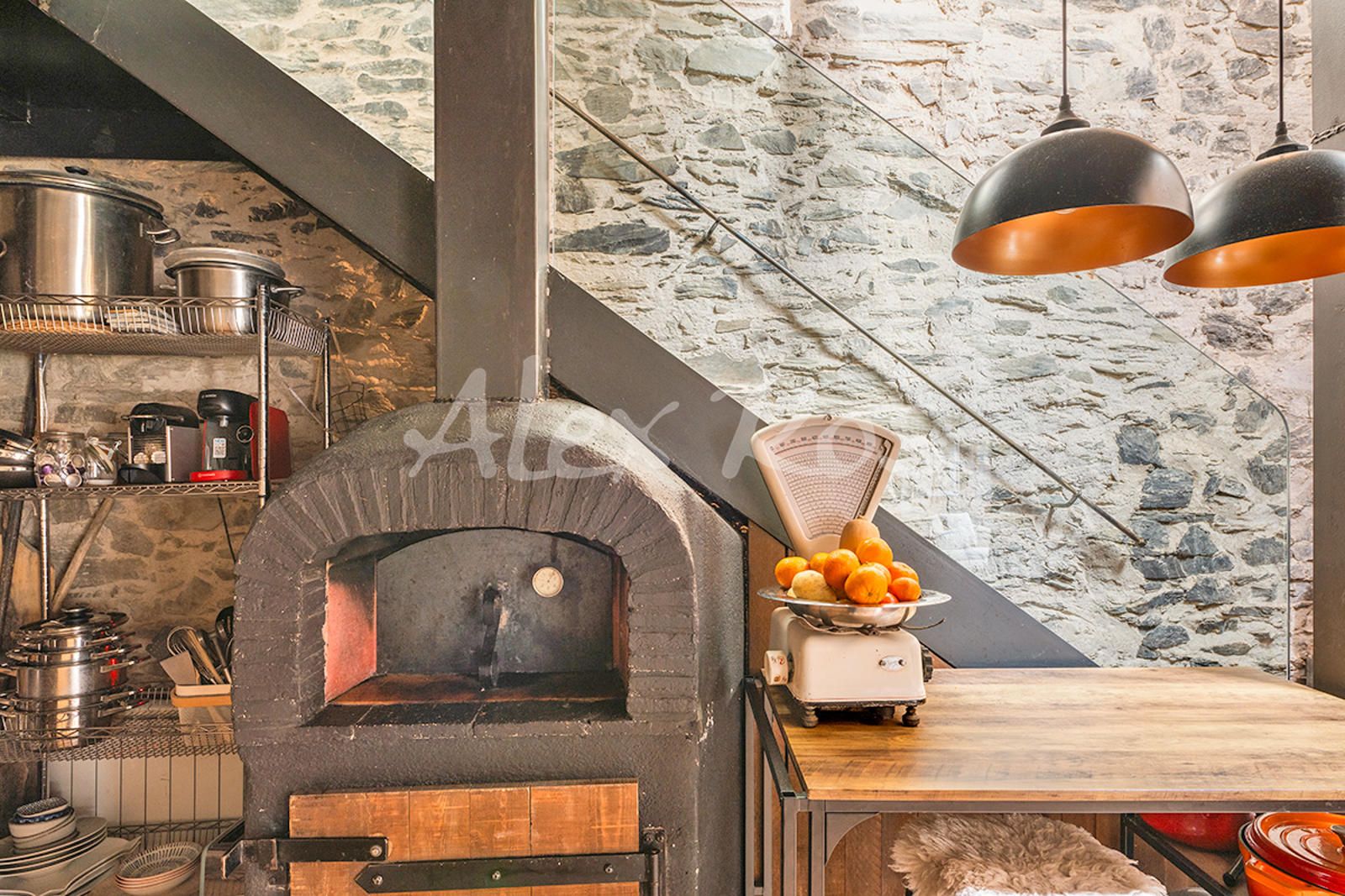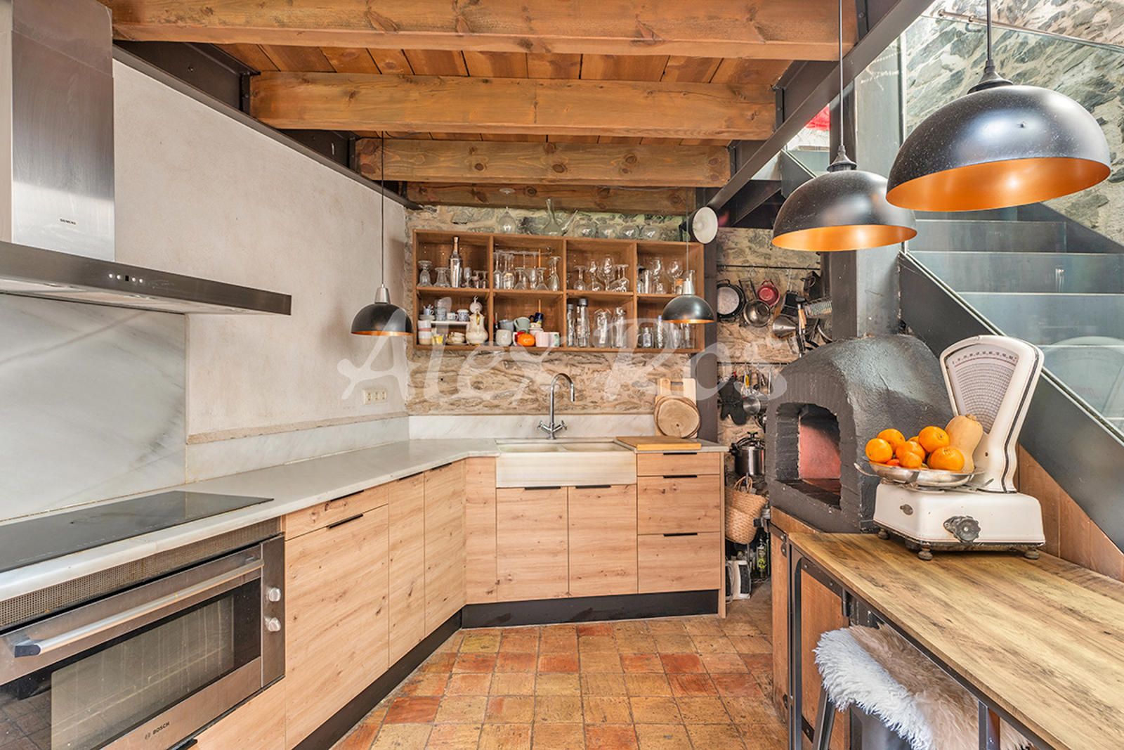 Cocina office con horno de leña.