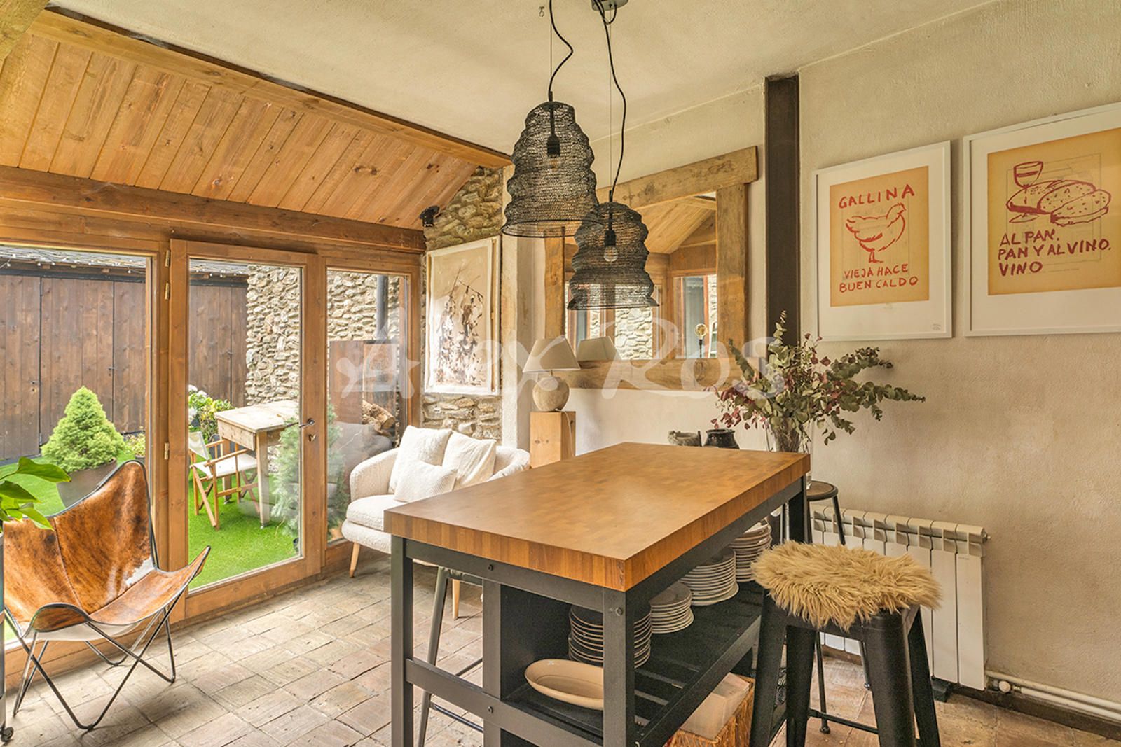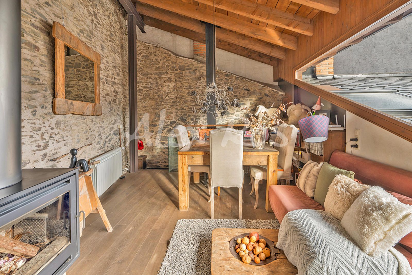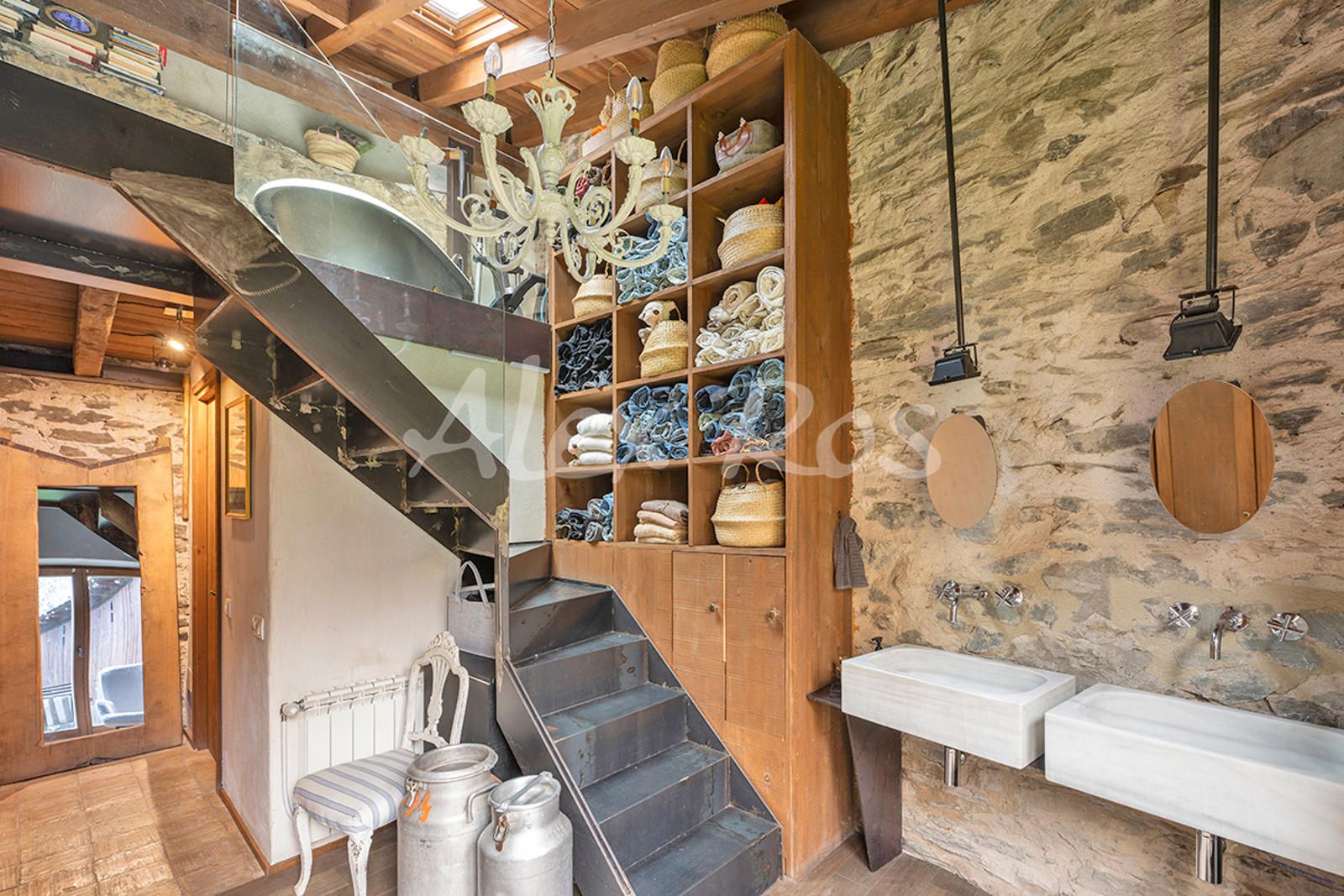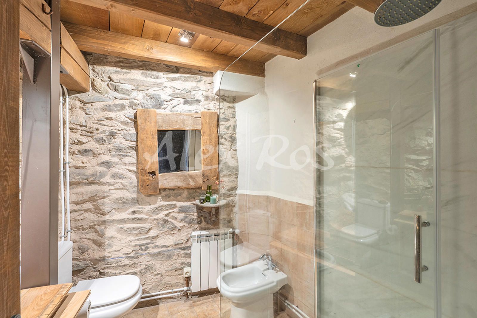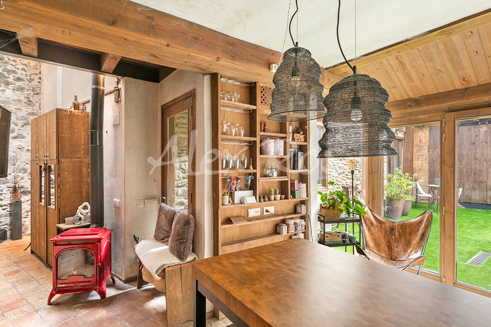 Casa totalmente reformada, con paredes de piedra, suelos de toves y techos de madera.