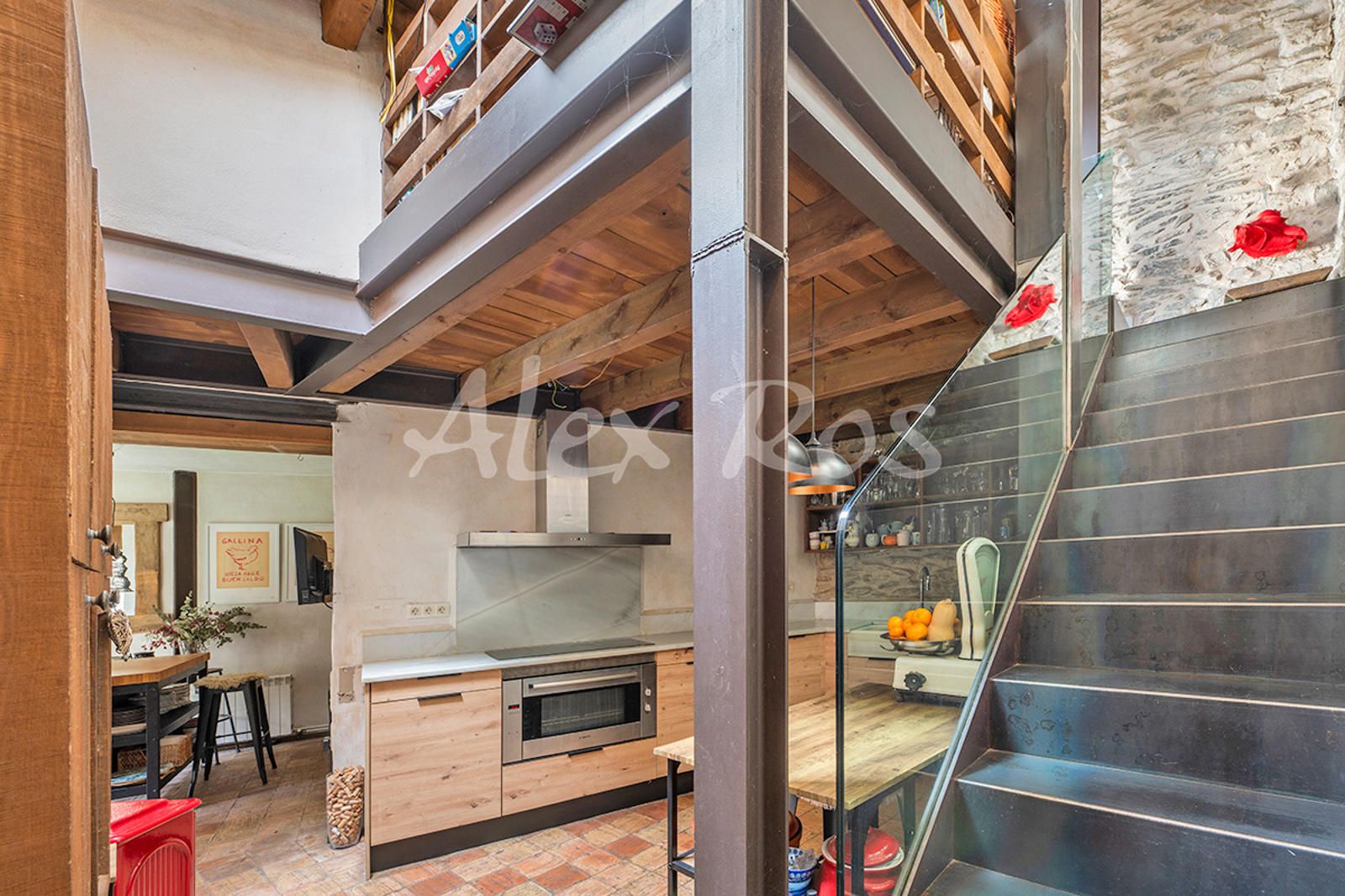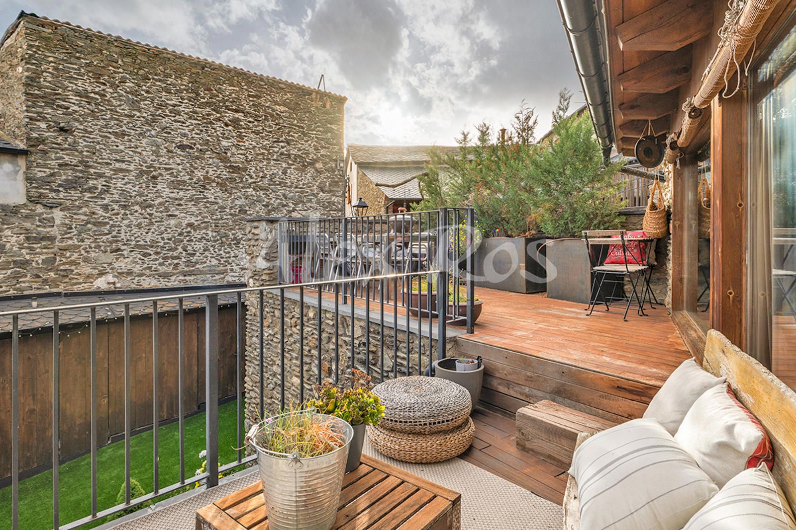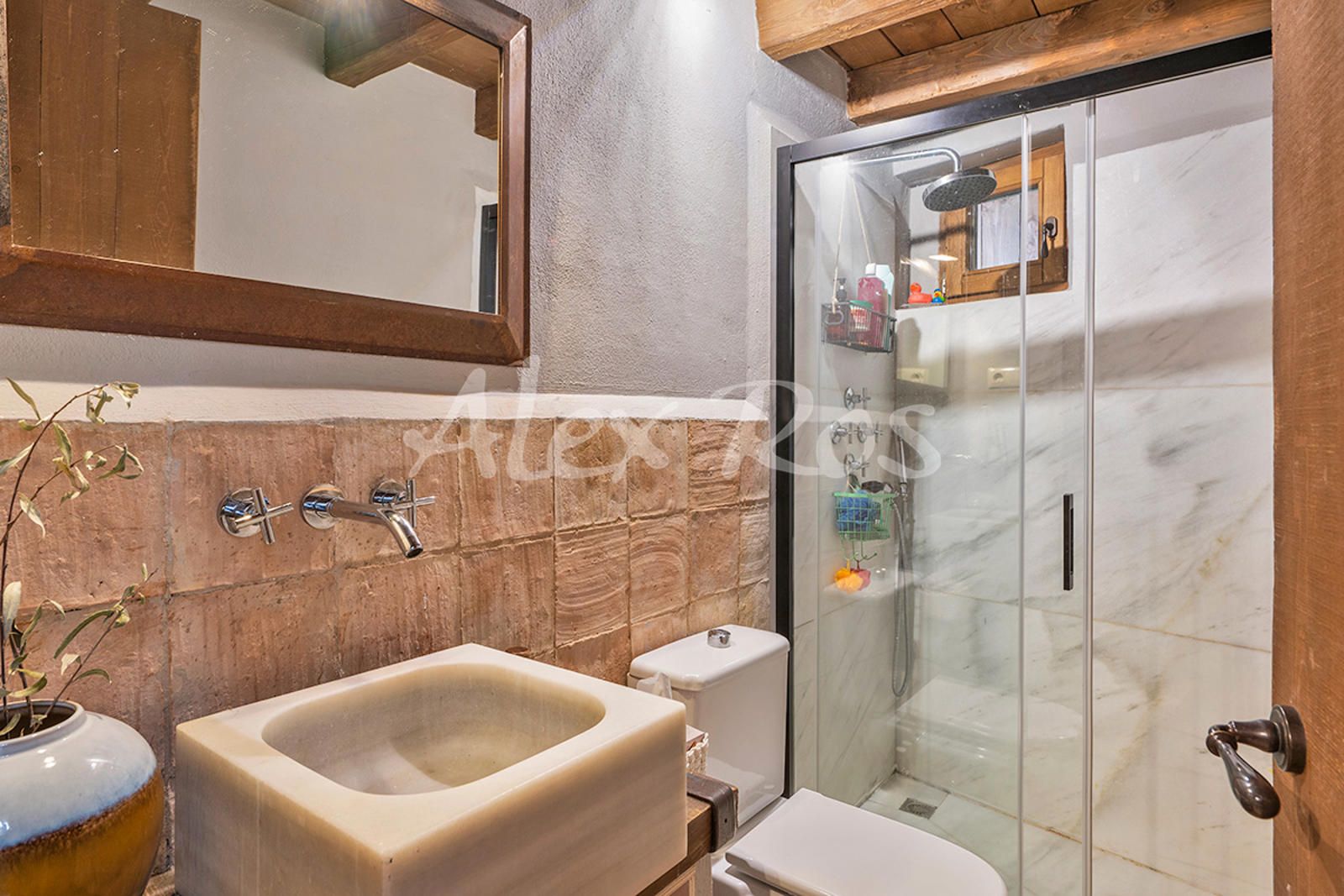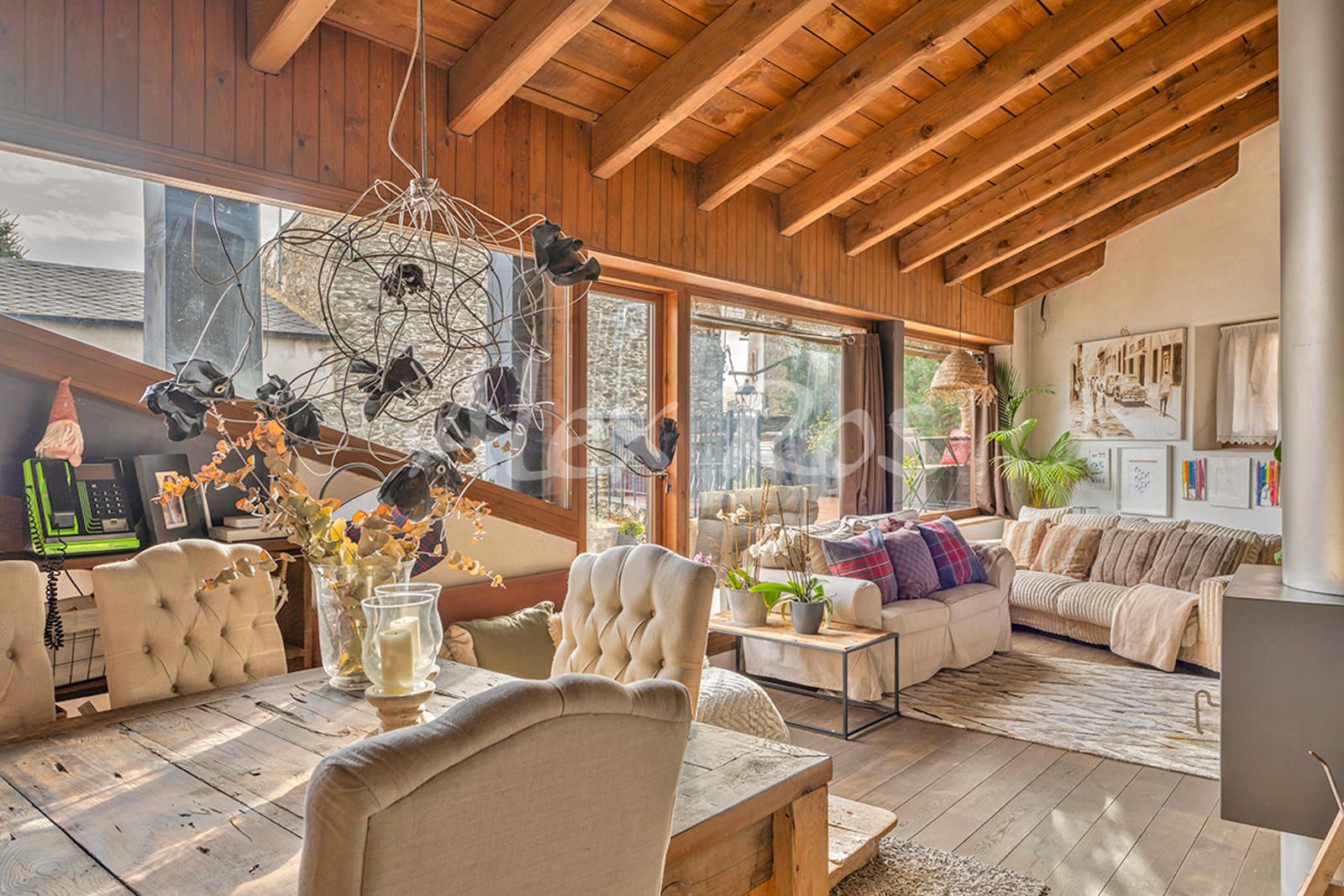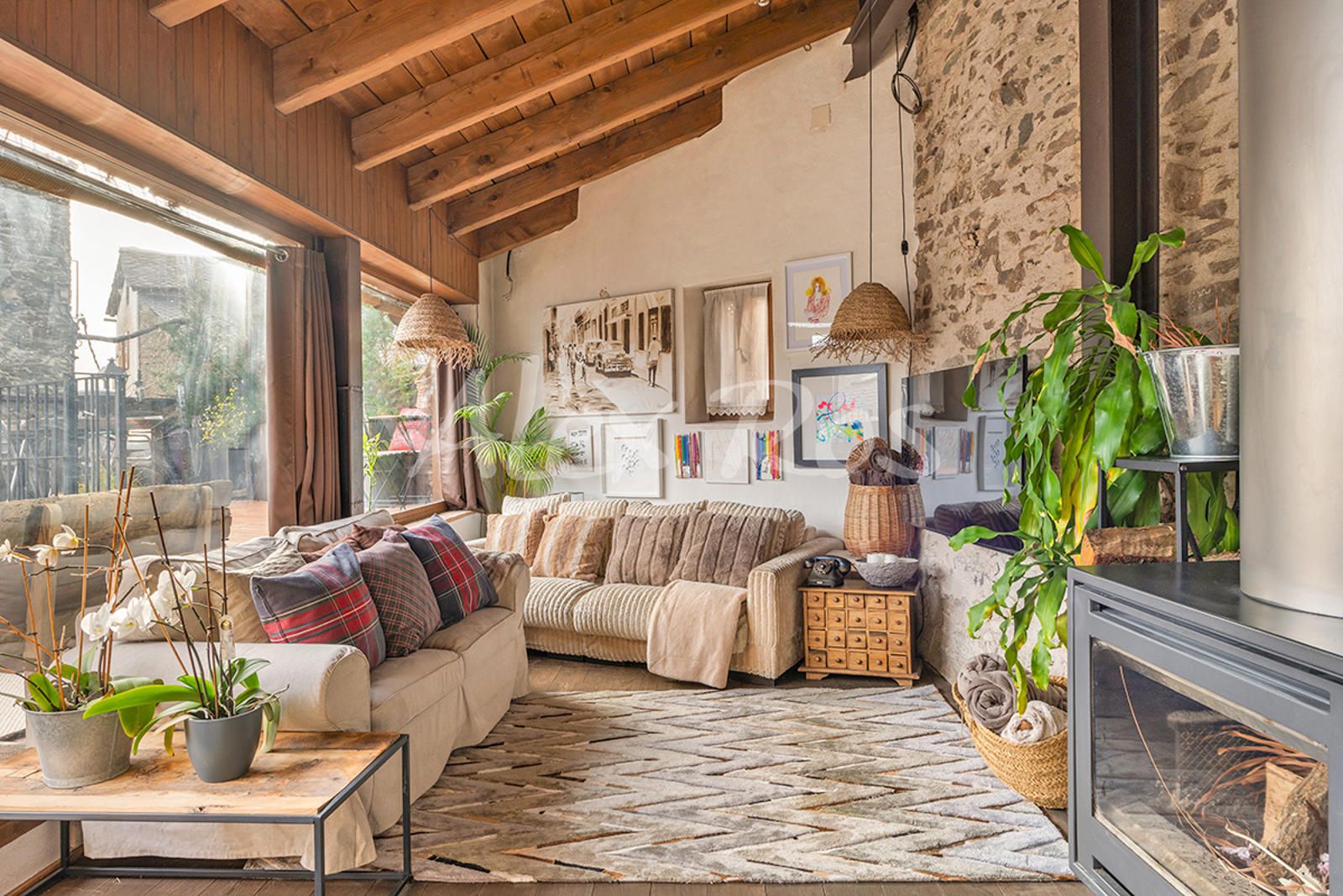Casa totalmente reformada, con paredes de piedra, suelos de toves y techos de madera.
